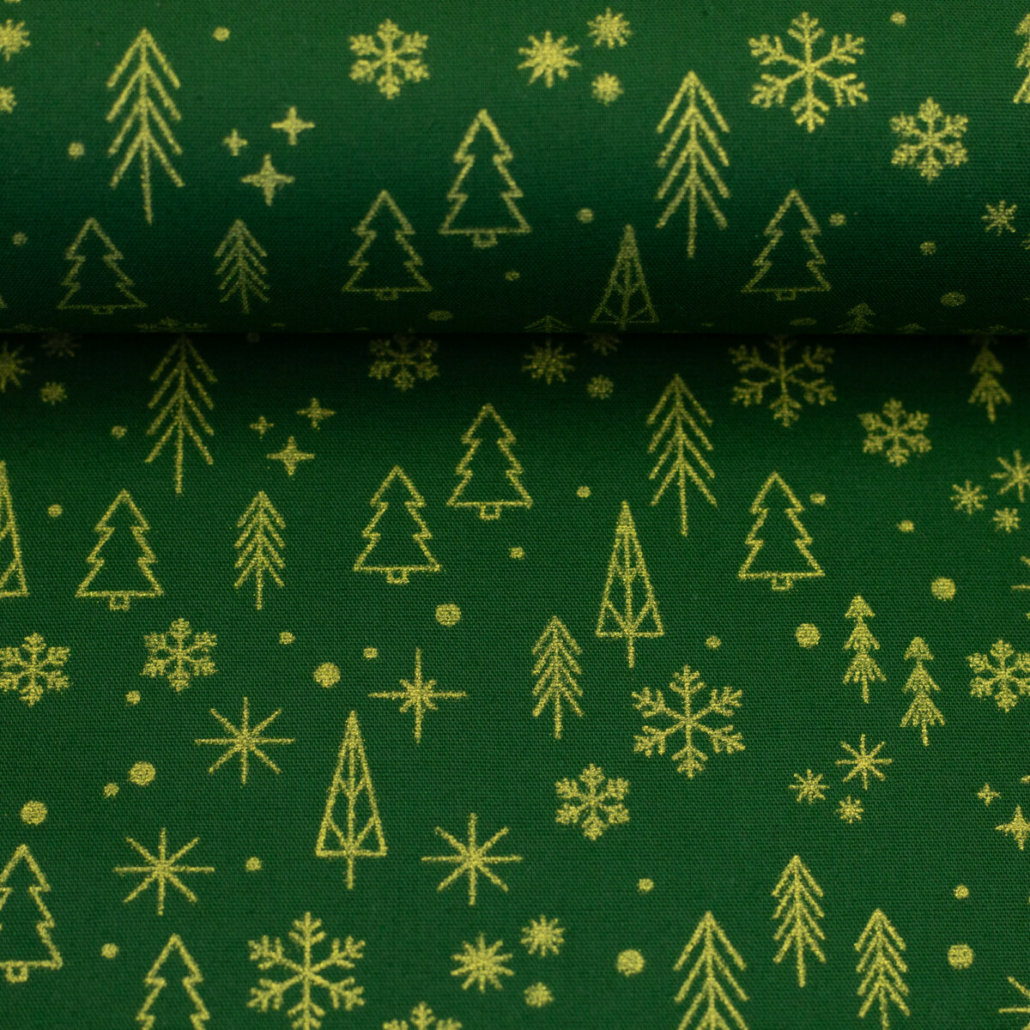 Baumwolle Muster Tannen Gold/Dunkelgrün