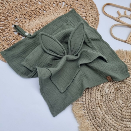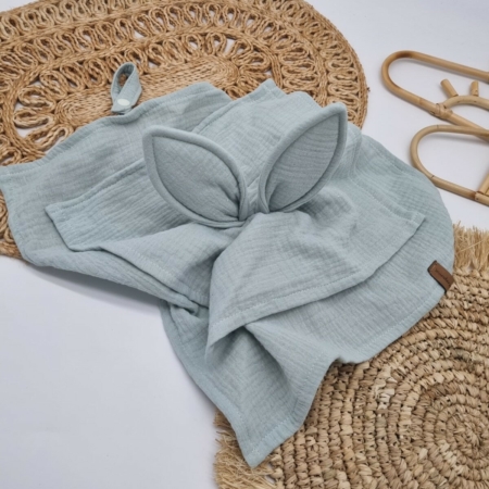 Entdecke das perfekte Kuscheltuch für dein Kleines! Unser Musselintuch mit süßen Hasenohren ist aus 100% Baumwolle gefertigt und bietet mit einer Größe von 38 x 38 cm genau die richtige Größe zum Schmusen und Kuscheln. Es ist nicht nur eine wunderbare Einschlafhilfe, sondern auch praktisch mit einem Band für den Schnuller ausgestattet.