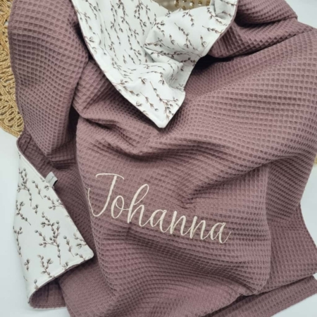 Auf Wunsch kann die Decke mit Namen bestickt werden. Bitte gebt den Namen bei der Bestellung mit an.