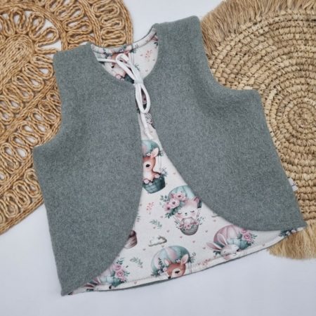 Die Weste besteht aus einem Teddystoff Außen und einem Jersey Stoff .