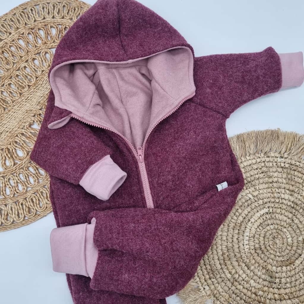 Material: 100 % Schurwolle ( vollständig natürliches Material ) , Baumwolljersey, Bündchenstoff